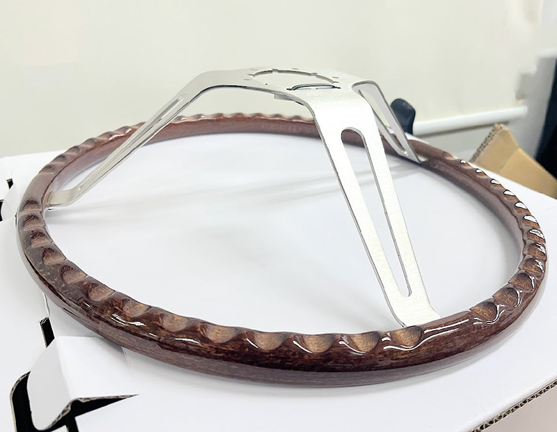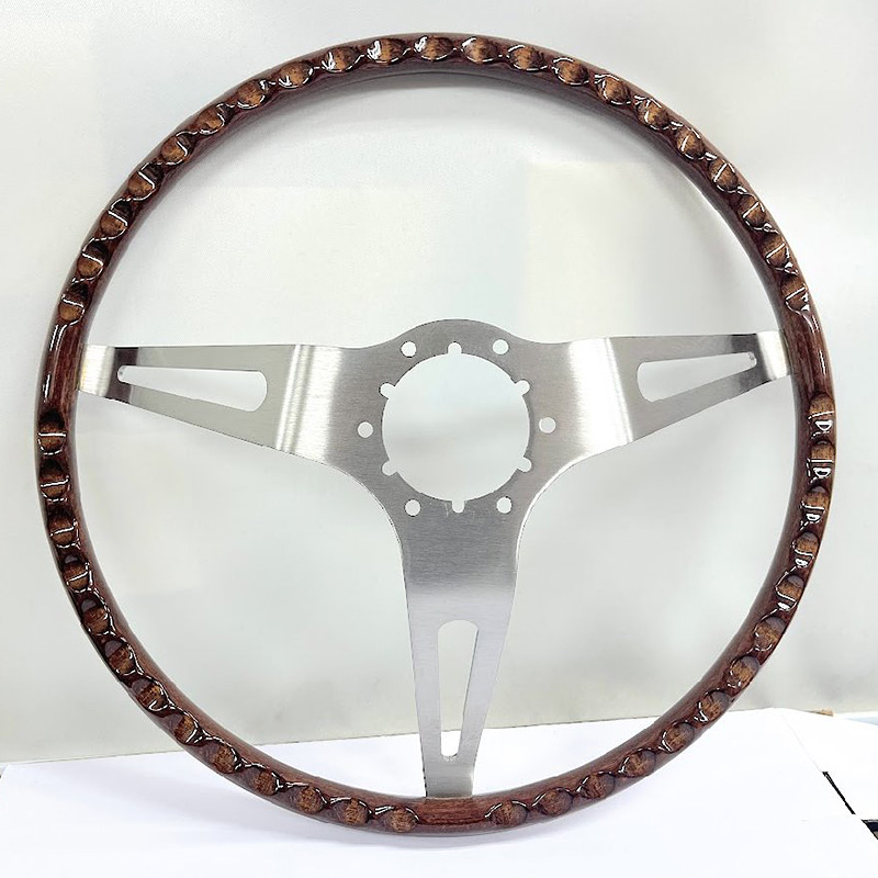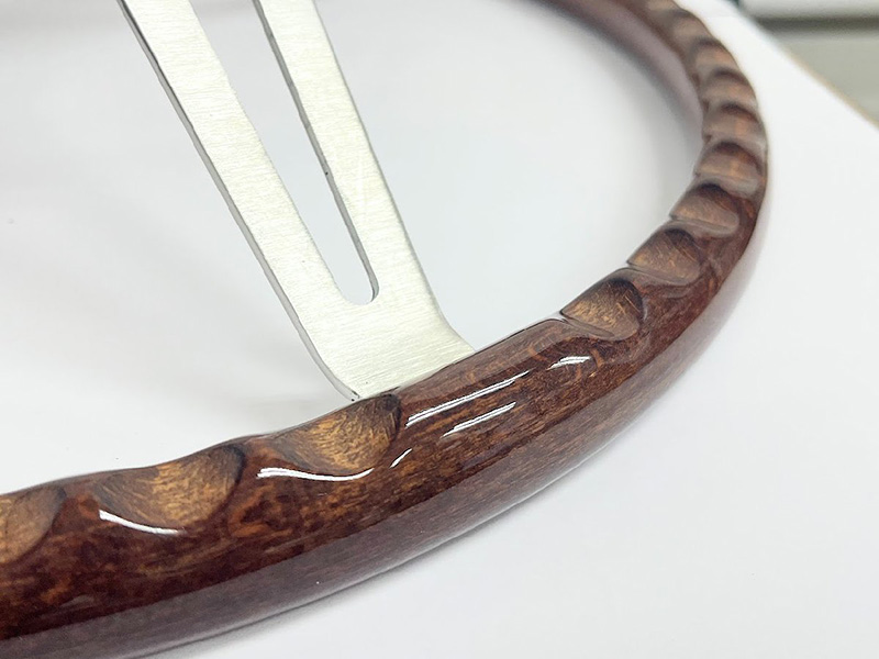 | 今年も限定でやっと入荷です。アメリカのリプロ品新品未使用です。年に5本しか特注で作ってもらえません。かなり希少です。 当方、クラッシックポルシェ、クラシックジャガーなどリプロステアリングを取り扱っておりますが、こちらもかなりの出来具合と自負しております。 ステアリングのみの販売となります。 純正ホーンボタンは当方取り扱いございませんがナットと共留めタイプのアルミビレットホーンボタンは当方でも販売しております。 スポークのヘアラインが中心に向かっていますので、ホーンボタンは共留めタイプ以上の大きさをお勧めいたします。 センターは錆びにくい304ステンレス無垢、グリップはヌメヌメのウォールナット無垢を繋目が分からないくらい奇麗にサンドイッチ。 4インチディープ(平置き全高約100mm)。 こちらは15インチ(380mm)バージョンです。最近はパワステもあるし、オリジナルの16インチじゃない方が良い!という方に!! 他、純正と全く同じようにつくられた16インチ4インチディープもあります。売り切れ前に是非どうぞ。 1967~1972年あたりまでのGM,シボレー、ビュイック、ポンティアック、オールズモビル の新車時のオプションで選べるスポーツタイプ純正ステアリングの リプロダクションステアリングの、16インチではなく、「15インチ4インチディープ」をあえて製作しました。 純正リプロは16インチの4インチディープですが、それよりも、深さは同じく4インチで、若干小さく作られております!! 直径約380mm 、 ウッド厚み24mm、 ホーンボタンが付くセンター穴直径56mm PCDは70mmの6穴 このステアリングは裏側がフラットなのでモモ用ボスでも30°ずらせば使用できます。 モモのボスが高い場合は薄めアルミビレットGM用特注もございます。 参考になるかわかりませんが動画はこちら↓ |