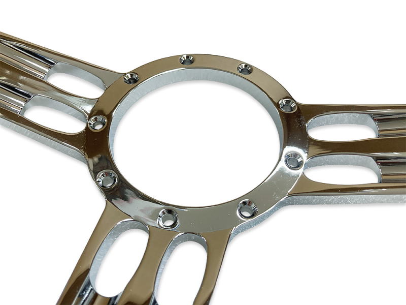 | ノーブランドです。 ノーブランドです。 アルミ削り出し&クロムメッキに上側半分が樹脂レザーを装着されてます。 アルミ削り出しなので若干のヘアライン傷はご了承ください。 クロムメッキが剥がれてもアルミ無垢なので磨きなおしが可能です。 直径14インチ(約34.7cm) 高さ2インチ(約5cm) ・ホーンボタンは別売りです。(ホーンボタンはこちら) ・インチボルトは別売りです。(ボルトはこちら) ・インチボルト用レンチは別売りです。(インチボルトレンチはこちら) ・取り付けボルトは9穴でモトリタ、レカラと同じく102mm ・ ボス、アダプターは別売りです。 ・3穴グランツ、6穴モモ70mm、5穴グランツ73mmから9穴へのアダプターもございます。 (ボス、アダプターはこちら) あくまでも私有地、ショー向けのカスタムパーツですので公道でのご使用はお近くの自動車屋さんにてご相談下さい。 参考になるかわかりませんが動画 参考になるかわかりませんが交換後の動画 |