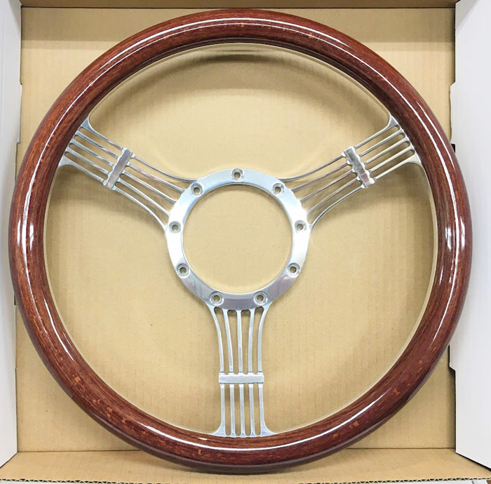 | ノーブランドです。 アルミ削り出しにリアルウォールナットウッドを装着されてます。 直径14インチ(約34.7cm) 高さ2インチ(約5cm) 取り付けボルトは9穴でモトリタ、レカラと同じく102mm ボス、アダプターは別売りです。 ホーンボタン、インチボルト、インチボルト用レンチは別売りです。 あくまでも私有地、ショー向けのカスタムパーツですので公道でのご使用はお近くの自動車屋さんにてご相談下さい。 |